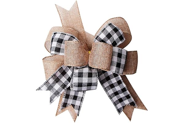 ACCFOD Buffalo Plaid Burlap Bow for Christmas Wreath Fall Christmas Tree Topper Bows for Wedding Party Farmhouse Decoration Ornaments Black and White Plaid Bow