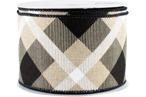 2 1/2 " x 10 Yards, Tan Black and White, Buffalo Plaid Checks, Christmas Decorations, Winter Wreath Embellishments, Boxing Day, Fundraiser