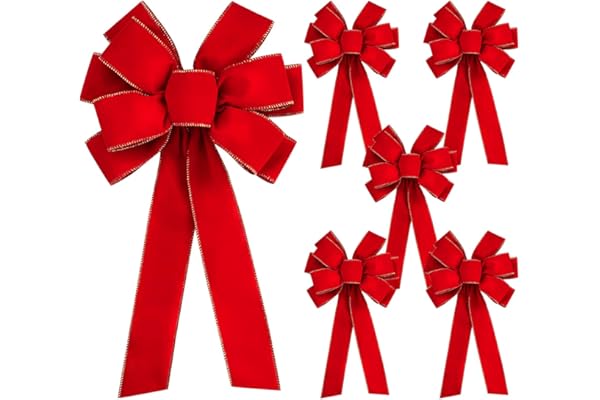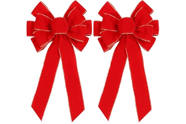 SIMISI RIBBON Red Bows Christmas Decorations Big Wired Velvet Bow with Gold Border for Wreaths Outdoor