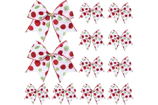 Jetec 12 Pcs Christmas Bows Decorations 6 Inch Large Christmas Tree Bows Red Green Wreaths Ornaments Bows for Xmas Garland DIY Home Indoor Outdoor Party Decor (Dot Pattern)