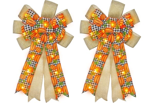 2 Pack 20 Inch Prelit Fall Thanksgiving Wreath Bow Decorations 20 Lights Each
