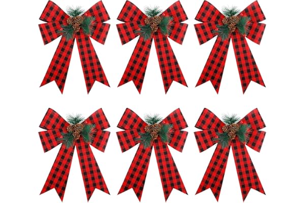 FUNARTY Christmas Red Buffalo Plaid Bows 9 x 12 Inch Large Waterproof Holiday Decorative Bows with Pinecone for Wreath Garland Christmas Tree Topper Outdoor Decorations