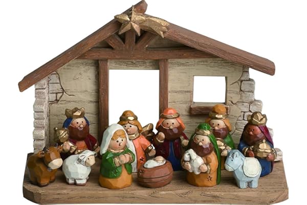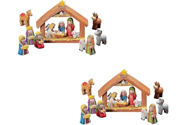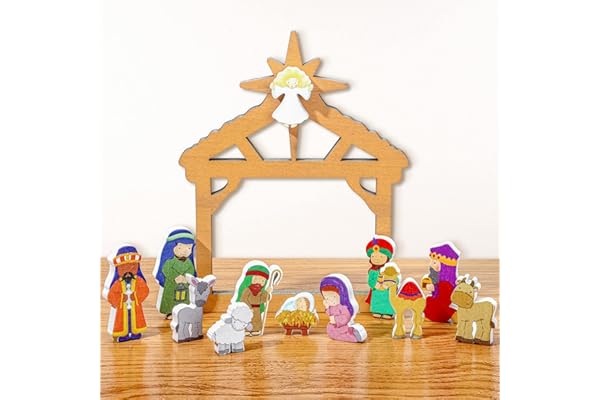 Queekay 13 Pcs Christmas Kids Nativity Scene Wooden Set Mini People Nativity Set First Story Decor The Birth of Jesus Decor Religious Present for Children Family(Holy Style)