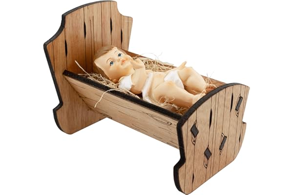 Perfect for Indoor Nativity Scene | Traditional Religious Christmas Decoration | Wooden Manger with Removable Baby Jesus | Great Gift | Choose from 3 Sizes (Medium)