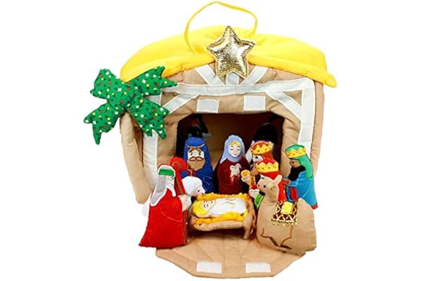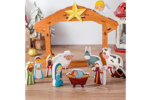 Queekay 13 Pcs Christmas Kids Nativity Scene Wooden Set Mini People Nativity Set First Story Decor The Birth of Jesus Decor Religious Present for Children Family(Holy Style)