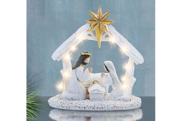 Nativity Scene with LED String Lights, Sculpted Hand Painted Nativity Figure