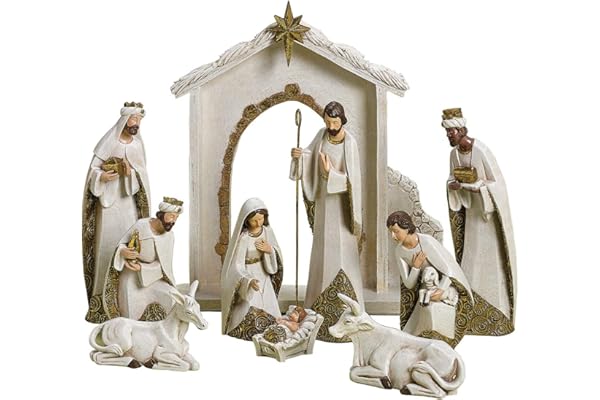 Roman Ivory and Gold Christmas Nativity 10 Piece Set Holiday Decoration New 31379
