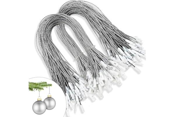 200pcs Silver Christmas Ornaments Hooks Hanger String Precut Hanging Ribbon for Christmas Tree Ornament Decorations with Snap Fastener