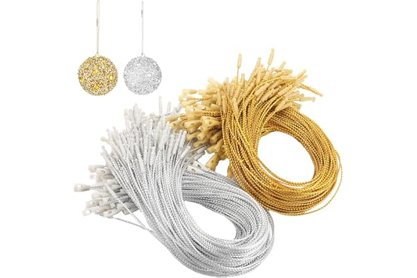 Christmas Ornaments Hanger String 100Pcs Silver + 100Pcs Gold Ribbon Ornament Hook Ropes Precut String with Snaps Locking for Xmas Ornament Hanging Decorations