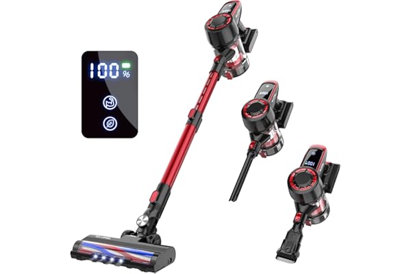 250W Stick Vacuum Cleaner with 30KPA Powerful Suction, Lightweight Handheld Vacuum LED Display for Carpet and Floor, Pet Hair (Hero 8-Red)