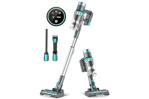 Cordless Vacuum with 20Kpa Super Suction, 80000 RPM High-Speed Brushless Motor, 5 Stages High Efficiency Filtration, Up to 30 Mins Runtime Vacuum Cleaner for Hardwood Floor