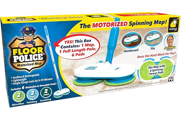 Floor Police AS-SEEN-ON-TV Electric Mop with Motorized Dual Spinning Mopheads & 6 Unique Cleaning Pads