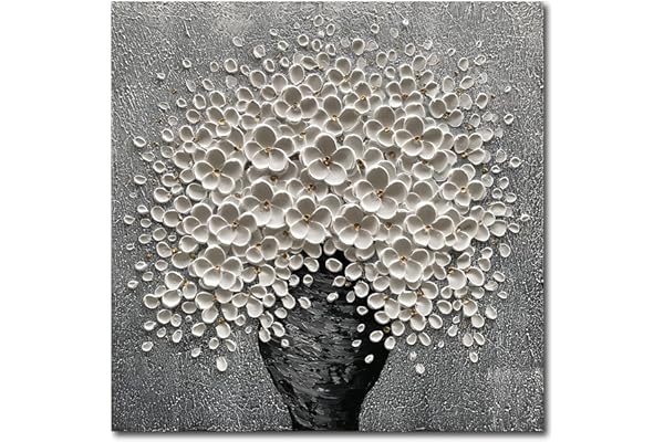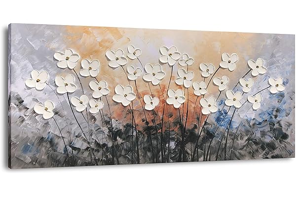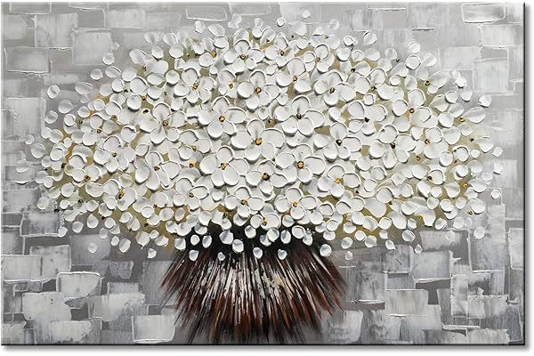 Epicler Art 100% Hand-Painted White Flower Art Oil Painting