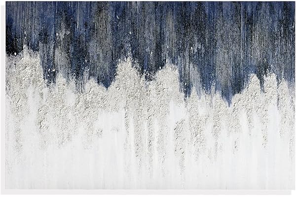 Hand Painted Abstract Oil Painting Wall Art on Canvas, Indigo Wall Picture Painting for Living Room Sofa Decoration (Navy Blue, 24X36inch)