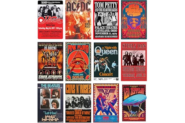 70s 80s 90s Retro Music Room Wall Bedroom Decor Wall Art, Vintage Rock Band Music Concert Poster Wall Collage, Old Music Album Cover Prints (12 SET B, 7.8X11.8 INCH)