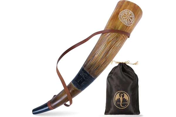 18Inch Genuine Ox Battle Trumpet with Leather Strap-Hand Engraved| Easy and Clear Sound| Gift Bag
