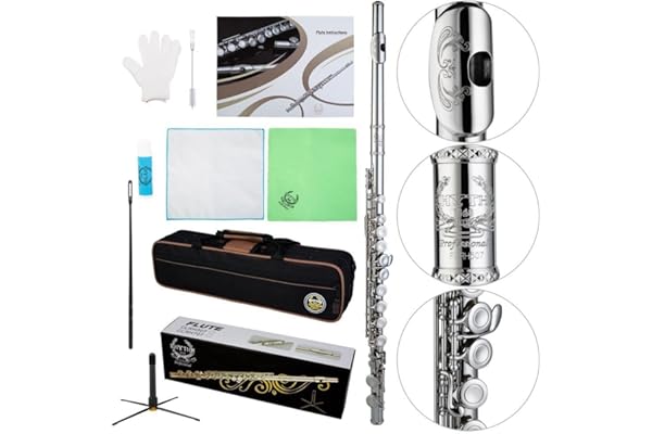 Professionals & Beginner, Orchestra Musical Nickel Flute with Hard Case, Cleaning Rod, Cloth, Gloves (Silver)