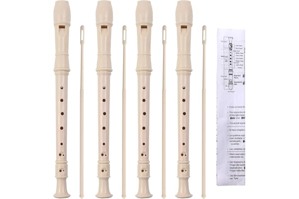 4 Pack 8 Hole Plastic Soprano Descant Recorder With Cleaning Rod