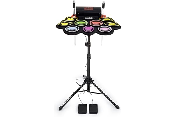 Foot Pedals, Drumsticks, Built-In Speaker, and Rechargeable Battery