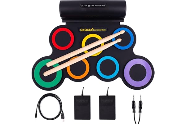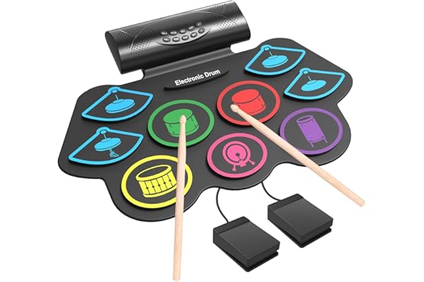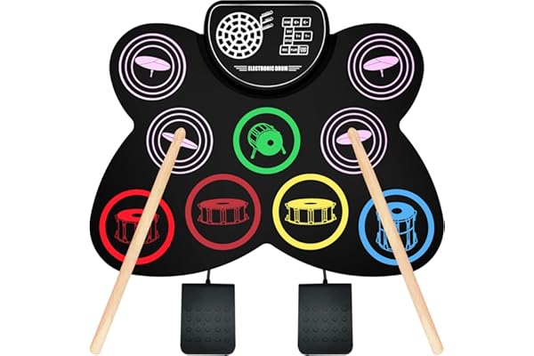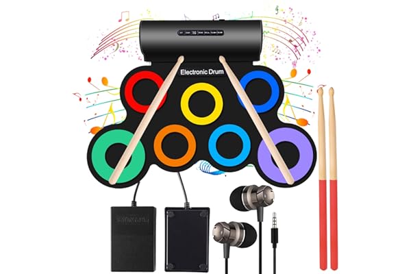 Oirtmiu Portable Electronic Drum Set Roll-Up Drum Practice 7 Pads Drum Kit Built-in Speaker with Headphones Drum Pedals Drum Sticks 10 Hours Playtime
