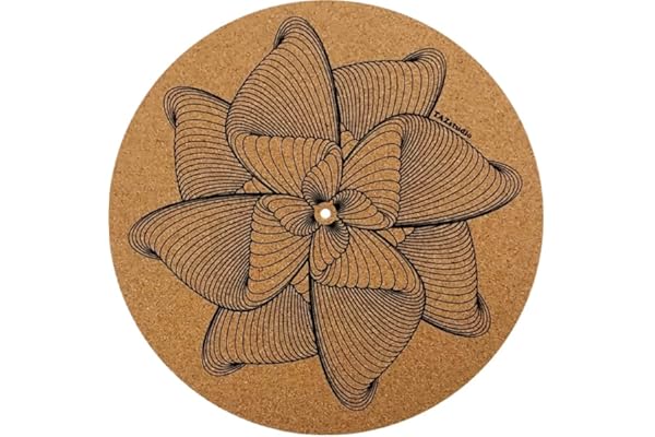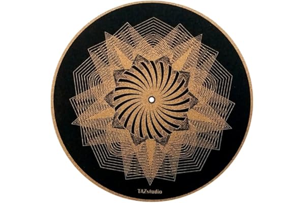 TazStudio premium slipmat -Cork Turntable Mat for Better Sound Support on Vinyl LP Record Player- Help Reduce Noise and Dust- cork mat Original Geometric Design Psychedelic Dark light [3mm thick]