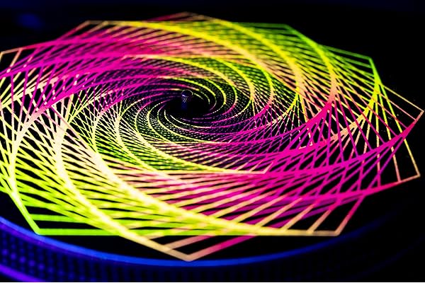 Cork Turntable Mat [4mm Thick] for Better Sound Support on Vinyl LP Record Player - cork mat Original art Design - Psychedelic Geometric Spiral lines