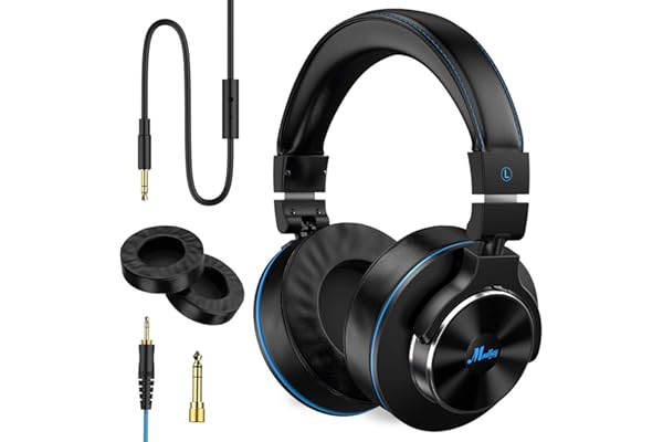 Prefessional Studio Monitor Mixing DJ Headset with Stereo Sound for Electric Drum Piano Guitar AMP, 50mm Neodymium Drivers