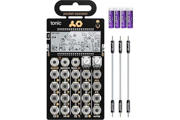 teenage engineering PO-32 Pocket Operator Tonic Drum Synth Bundle with Blucoil 3-Pack of 7" Audio Aux Cables
