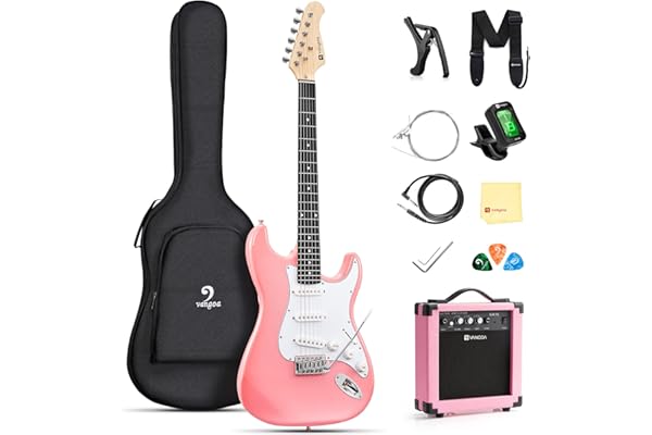 Vangoa 39 Inch Full Size Electric Guitar Beginner Starter Kit Pink with Amplifier