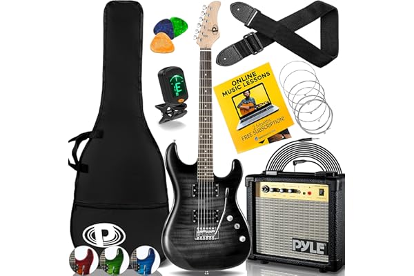 Laurel Fingerboard, Black, with Gig Bag, Amp, Strap, Cable, Picks, and Online Lessons