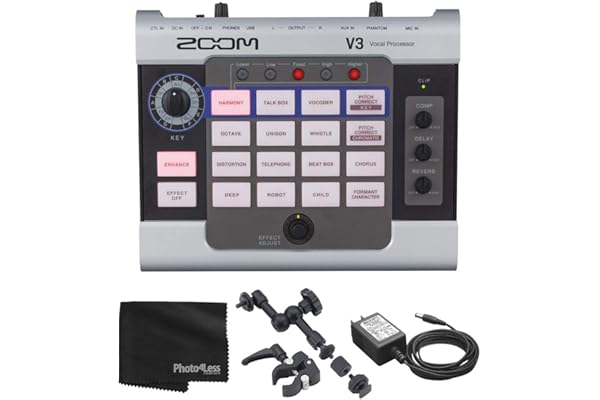 Zoom V3 Vocal Effects Processor For Streaming and Recording + Zoom Handy Recorder Mount + AC Adapter + Cleaning Cloth