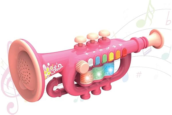 Fun Toy Trumpet for Kids – Educational Kids Musical Instruments for Music Practice – Mini Trumpet with Light Effects, Adjustable Volume, Multiple Rhythms – Pink