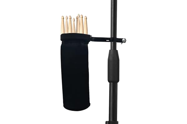 Nylon Drumstick Bag Removable, Clamp-On Lockable Aluminum Alloy Heavy Duty Clamp for Drumsticks Mallets Up to 10 Pairs, Black
