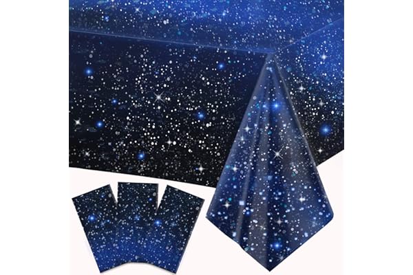 Plastic Galaxy Table Cover Outer Space Stars Theme Party Supplies for Birthday Party Decorations, 54 x 108 Inch (3 Pieces)