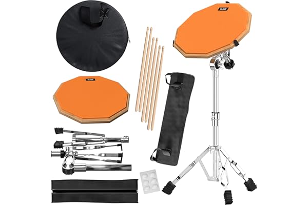 Practice Drum Pad Set with Two Different Surfaces -12 Inch Double Sided Silent Drum Pad & Four Inch Snare Drum - Practice Drum Pad Set with Stand & Drumsticks