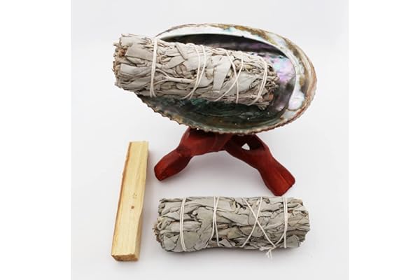 Spiritual Cleansing Sage Smudge Kit with Abalone Shell, Mango Wood Tripod, Palo Santo Stick and Set of 2 White Sage - Inspiring Smudging Kit to Cleanse Negativity