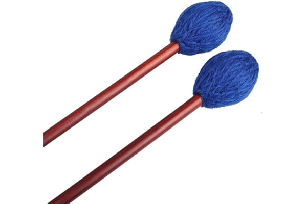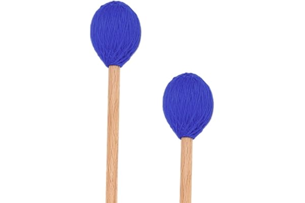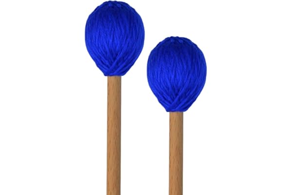 Blue Medium Hard Mallets Yarn Head Keyboard Marimba Mallets with Maple Handle, Pack of 2