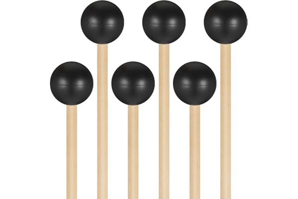 6 Pcs Rubber Mallet Percussion Xylophone Bell Mallets Glockenspiel Sticks Drum Stick Mallet with Wood Handle Rubber Mallet Percussion Instrument Kit for Gong Woodblock Drum Bells (Black)
