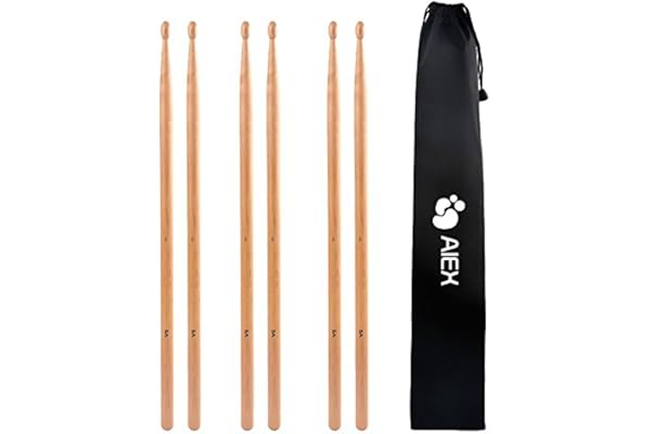 AIEX 3 Pair Drum Sticks Classic Maple Wood Drumsticks Wood Tip Drumstick for Students and Adults (with Waterproof Bag)