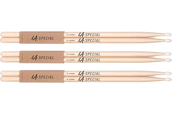 7A Drumsticks - Drum Sticks Set for Acoustic Drums or Electronic Drums - Oval Nylon Tip - Hickory Drumsticks - Consistent Weight and Pitch - 3 Pairs