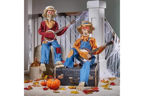 Dueling Banjo Skeletons Animated LED and Sound, Set of 2
