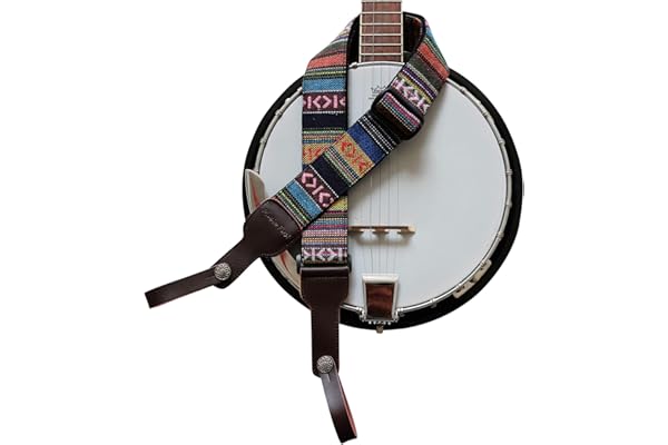 MUSIC FIRST Original Design, 2 inch width (5cm), Classic Country Style Yarn-dyed fabric & Genuine Leather Delux Banjo Strap, With 2 pieces of MUSIC FIRST Leather Strap Locker