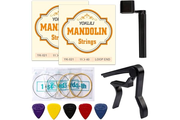 Yoklili 2 Sets of Silver-Plated Copper Alloy Mandalin Strings, Medium, 11-40, Bonus 5 Nylon Standard Heavy Picks, String Winder and Capo included
