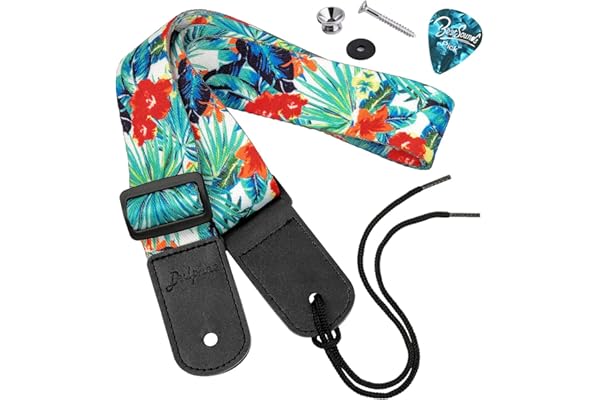 Eyeshot Adjustable Double J Hook Clip on Uke Shoulder Strap, Hawaiian Jacquard Kind Style Hands Free Ukelele Strap, Easy to Use and Fit Most Standard Uke Sizes