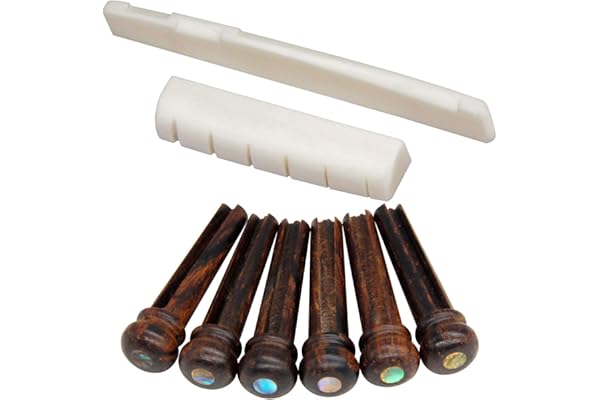 Blisstime 6 String Acoustic Guitar Bone Bridge Saddle and Nut and 6pcs Rosewood Guitar Bridge Pins