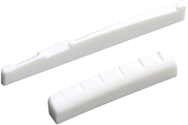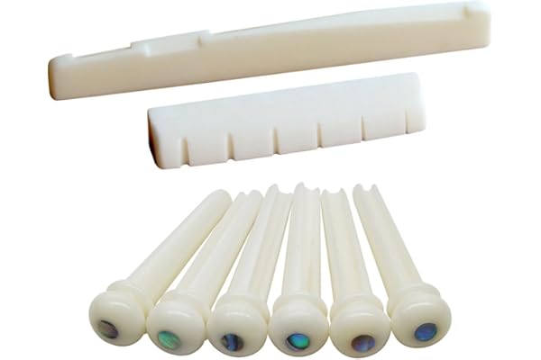 Blisstime 6 String Acoustic Guitar Bone Bridge Saddle and Nut and 6pcs Guitar Bone Bridge Pins Made of Real Bone