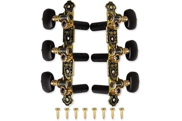 Mr.Power Guitar Tuners Machine Heads 3+3 Set Tuning Keys String Pegs for Classical Guitar (Short Black, Black Button)