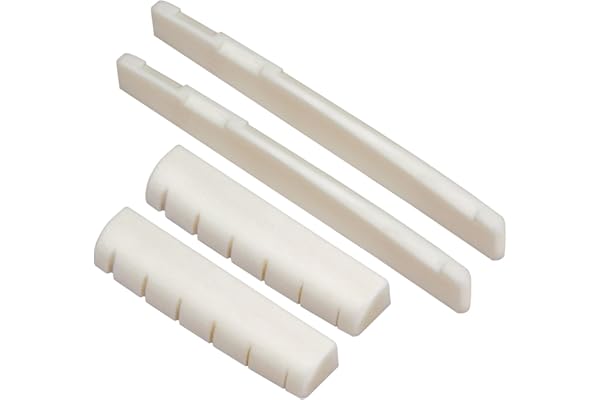 Blisstime 2 Sets 4pcs 6 String Acoustic Guitar Bone Bridge Saddle and Nut Made of Real Bone