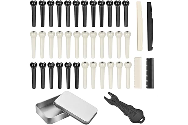 36PCS Acoustic Guitar Bridge Pins Pegs with 2 PCS Guitar Saddle Nut and Bridge Pin Puller Remover