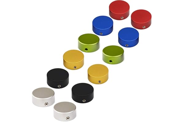 SOLUTEK Pedal Footswitch Topper Metal Buttons with 3 Screws and Rubber Insert Fit Firmly on Pedal Switches(3/8"10mm) Increase Comfort and Accuracy Red Silver Black Gold Blue Green 12 Pack